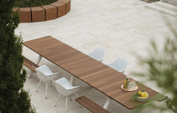De vormentaal van Belgisch outdoor design sluit nauw aan bij die van het interieur: ingetogen, helder en doordacht. Toch vraagt de buitencontext om een andere benadering. Objecten moeten bestand zijn tegen open ruimte en wisselende schaal. Een tafel moet niet alleen functioneel zijn, maar ook visueel standhouden in een grotere omgeving. Stoelen en loungesets moeten comfort bieden zonder zwaar of dominant te worden. Daarom ligt de nadruk sterk op proportie. Lijnen zijn vaak slank, maar stevig. Vormen zijn eenvoudig, maar zorgvuldig uitgebalanceerd. Ronde en rechte elementen worden subtiel gecombineerd om spanning en zachtheid te creëren. Die aandacht voor verhouding zorgt ervoor dat het design aanwezig is, zonder de ruimte te overheersen.